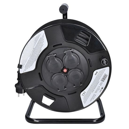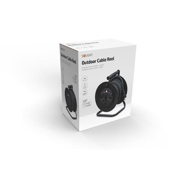 Gumený kábel s vodičmi o priereze 3×1,5 mm2 je vhodný na vonkajšie použitie aj v interiéri. Buben je vybavený zásuvkami s detskou poistkou a tepelnou poistkou, ktorá zabezpečuje bezpečnosť pri preťažení alebo neúplnom odvinutí kábla. Produkt spĺňa stupeň krytia IP44, ktorý zabezpečuje ochranu proti striekajúcej vode.