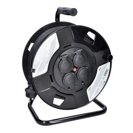 Predlžovací kábel na navíjacom bubne s dĺžkou 50 metrov a štyrmi zásuvkami je ideálny pre použitie vonku, na stavbách alebo v dielňach. Gumený kábel zabezpečuje odolnosť proti poveternostným podmienkam a mechanickému namáhaniu. Produkt je navrhnutý pre bezpečné a spoľahlivé pripojenie stavebných, záhradných aj menej náročných priemyselných zariadení.