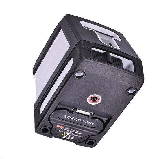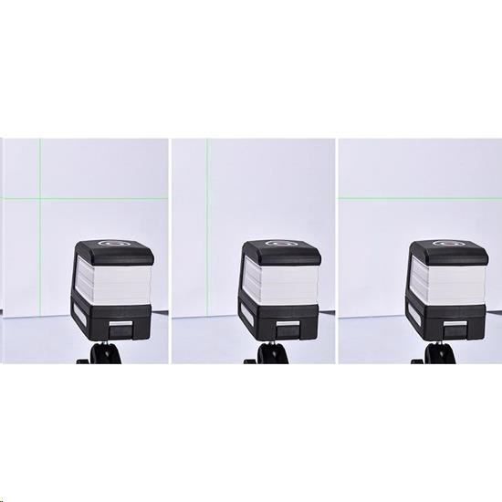 laserová vodováha so zeleným laserom horizontálny a vertikálny lúč samonivelačný režim alebo režim ľubovoľného uhla dosah lúča: až 30m pracovná doba až 8 hodín ochranné puzdro je súčasťou balenia kontrolka indikujúca dosiahnutie vodorovnej hladiny 1/4" statívový závit trieda laseru a vlnová dĺžka: II., 505-550nm presnosť nivelácie: +-3mm/10m maximálny rozsah nivelácie: +-4° stupeň krytia: IP54 pracovná teplota: -10° + 50°C 4x AA batérie (nie sú súčasťou balenia)