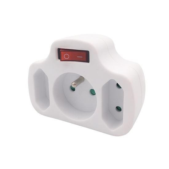 Solight rozbočka, 1x 10A + 2x 2,5A, bílá, vypínač
