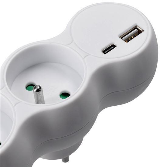 Solight rozbočka s USB A+C nabíječkou, 2 x 10A, bílá