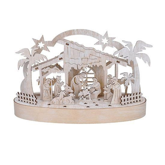 LED drevený betlehem v odtieni prírodného dreva