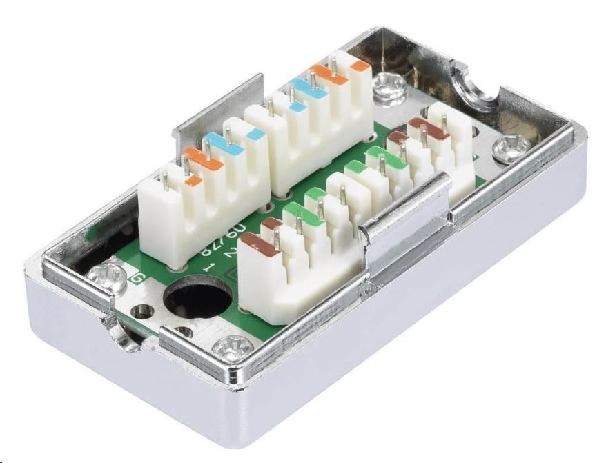 Propojovací box umožní propojit dva kabely STP Cat5E při zachování parametrů Cat5E