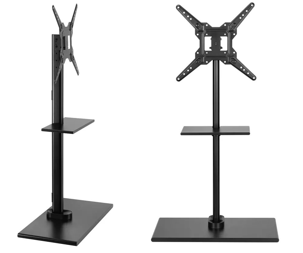 Veľmi pekný televízny stolík / stojan s pevnou stabilnou podstavou 700 x 350mm, poličkou na príslušenstvo 380 x 190mm, držiakom na televízie i monitory s podporou VESA 100x100 až 400x400 a možnosťou náklonu od +6° / -6° a nosnosťou 35kg. Stojan / stolík FM97-2 je vhodný ako do domácností (obývací alebo detský izba, spálňa), tak aj do komerčných priestorov (kancelárie, predajne, stánky, recepcia). Farebné prevedenie čierne. Záruka 5 rokov.