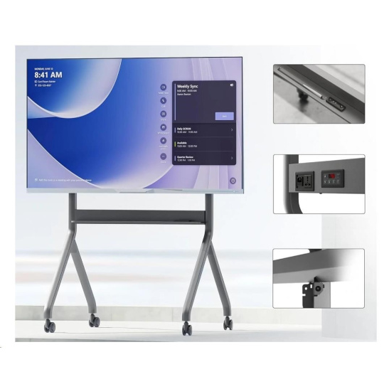 Kvalitný, veľmi pekný pojazdný televízny stojan s elektrickým pohonom na úpravu výšky obrazovky od 1500 mm do 1750 mm. Stojan má policu na príslušenstvo 962x99 mm s integrovaným ovládacím panelom, 4 otočné pojazdové kolieska s aretáciou a držiak TV s podporou VESA 200x200 až 900x600. Súčasťou balenia je aj diaľkové ovládanie. Vynikajúca oceľová konštrukcia s nosnosťou 90,9 kg zabezpečuje vynikajúcu pevnosť, stabilitu a odolnosť. Na stojan poskytujeme záruku 3 roky. Stojan na interaktívnu tabuľu / televízor / dotykovú obrazovku / monitor NB P220 Popis: Univerzálny mobilný stojan pre stredne veľké a veľké obrazovky Perfektné riešenie pre interaktívne tabuľe a multimediálne obrazovky Široká, stabilná základňa s ľahkým prístupom k dotykovým obrazovkám Elektrické nastavenie výšky obrazovky Kvalitné materiály, veľmi pevná a odolná konštrukcia Polica na príslušenstvo s ovládacím panelom Podpora štandardu VESA Jednoduchá a rýchla montáž Ideálne do konferenčných miestností, škôl, na výstavy, prezentácie, prednášky alebo na súkromné použitie Štyri otočné kolieska s funkciou aretácie Vysoká nosnosť, skvelá stabilita, tichý a spoľahlivý motor Farebné prevedenie grafit Elektrický stojan na multimediálne tabule a multimediálne dotykové monitory NB P220 Technické údaje: Nosnosť 90,9 kg Pre obrazovky 60" - 100" Podpora VESA štandardov 200x200 až 900x600 Výškové nastavenie v rozsahu 150 ~ 175 cm Otočné kolieska s priemerom 75 mm s funkciou aretácie Pevná oceľová konštrukcia Spodná polica na príslušenstvo s ovládacím panelom, rozmery: 962 x 99 mm Dálkové ovládanie Výkonný motor 75W Napájanie 240V / 110V Povrchová úprava: práškový náter Farba: grafitová Záruka 3 roky