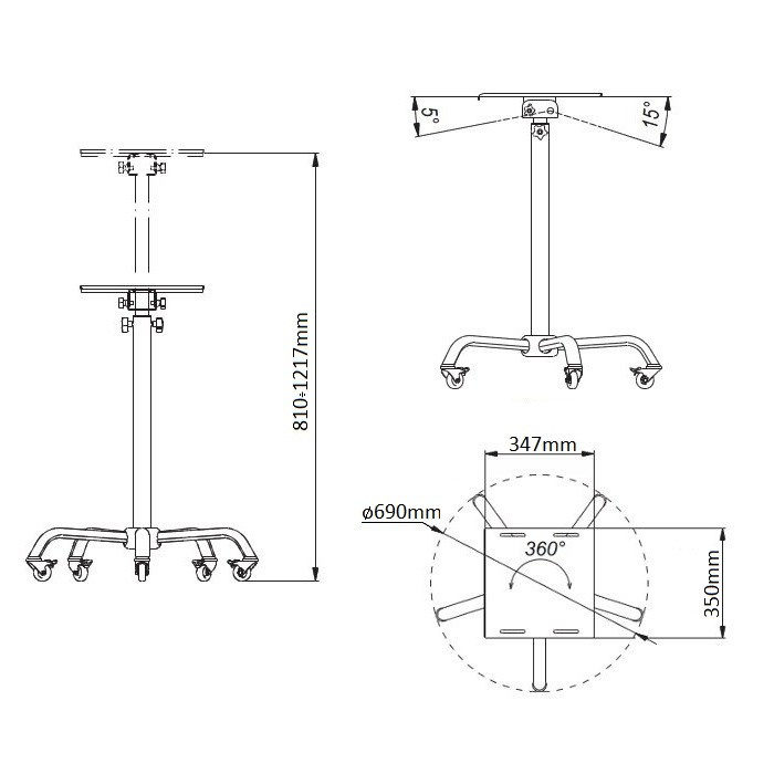 Pojazdný stolík na projektor alebo notebook EDBAK PT03 Profesionálny plne nastaviteľný podstavec na dataprojektor alebo notebook v profesionálnom prevedení. Nastaviteľná výška 810-1217 mm, náklon +5° / -15°, otočný do strán +/- 10°, rozmer podstavy 510x460 mm. Farebné prevedenie čierne s chrómovým nosníkom. Pojazdové kolieska sú vybavené brzdou. Pojazdný stolík, stojan na projektor alebo notebook Technické údaje: nosnosť 15 kg rozmery podstavca 350x347 mm minimálna výška 810 mm maximálna výška 1217 mm otočný +/- 10° sklopný +5° / -15° mobilná verzia s pojazdom pojazdové kolieska sú vybavené brzdou farebné prevedenie čierne profesionálna stabilná bezpečná konštrukcia zlava 5 rokov
