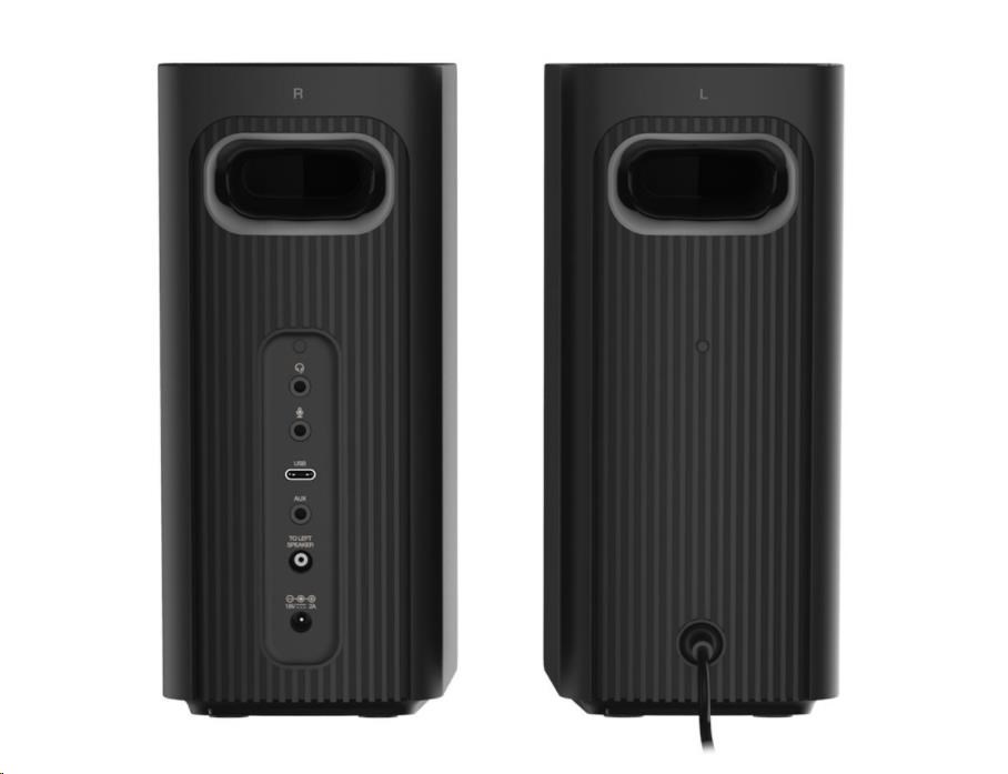 satelit: 2,0 m kábel pripojený k ľavému satelitu, kábel USB-C na USB-C (dĺžka kábla: 1,2 m), 3,5 mm stereo kábel na stereo (dĺžka kábla: 1,2 m)