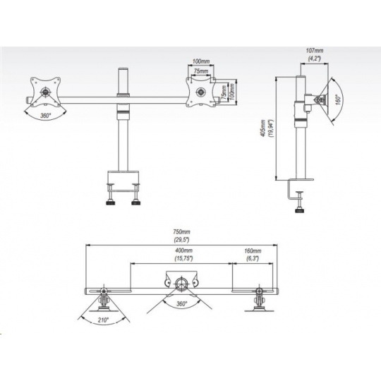 posun obrazovky v osi držiaka - nastavenie vzdialenosti medzi monitormi