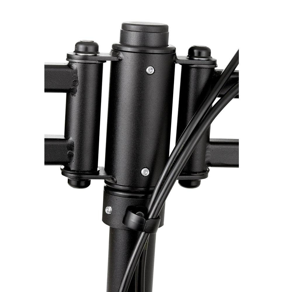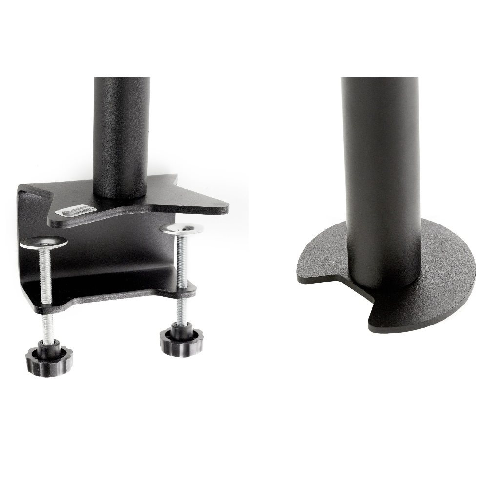 Stolný držiak na 6 monitorov Edbak SV17 Stolný držiak na 6 monitorov alebo televízorov s uhlopriečkou 17"-27", parabola, plne nastaviteľné polohy monitorov, profesionálna kvalita, VESA štandardy 75x75 a 100x100, farba čierna, nosnosť 60kg Profesionálny parabolický stolný držiak na 6 monitorov 17-27". Nastaviteľná poloha každého monitora podľa potreby: otáčanie do strán, naklápanie, korekcia roviny, pivot, posun do strán. Nastavenie potrebnej výšky vodorovných nosníkov s monitormi. V balení nájdete 2 typy stolových úchytov: svorky na uchytenie na okraje stolov alebo šroubovicu na uchytenie do prechodiek. Systém vedenia káblov. Najvyššia kvalita, silnostenný materiál. Podpora VESA štandardov 75x75 a 100x100, farebné prevedenie čierne, nosnosť 60kg. Záruka 10 rokov. Profesionálny stolný držiak na 6 monitorov v parabole Edbak SV17 Technické údaje: nosnosť 60kg na monitory s uhlopriečkou 17" až 27" VESA štandardy 75x75mm a 100x100mm polohovanie vzdialenosti monitorov medzi sebou 223mm nastavenie sklonu +/- 50° otáčanie monitora do strán +/-45° funkcia pivot uchytenie na stolové dosky o hrúbke 10-55mm (prechodka) alebo 10-80mm na okraj stola najvyššia kvalita, silnostenný materiál, profesionálny výrobok veľmi jednoduchá a rýchla montáž farba čierna záruka 10 rokov Držiak na 6 monitorov displejov Edbak SV17 Stojan na 6 monitorov Edbak SV17 podporuje VESA štandardy: VESA 75x75 VESA 100x100 možnosť zakúpenia rozšírenia na VESA 200x100 a 100x200 možnosť zakúpenia rozšírenia na VESA 200x200