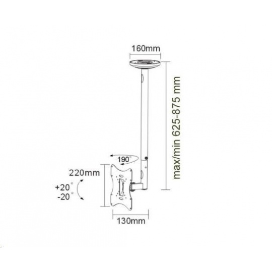 Technické údaje: maximálne zaťaženie 30kg na LCD plazma LED televízory a monitory odporúčaná uhlopriečka obrazovky 22" až 42" VESA štandard 75x75 až 200x200 otočný do strán +90° / -90° náklon obrazovky +20° / -20° nastaviteľná dĺžka držiaka od 625mm do 875mm systém skrytého vedenia káblov kvalitná, bezpečná a pevná konštrukcia farba čierna záruka 2 roky VESA 75x75 VESA 100x100 VESA 200x100 VESA 200x200