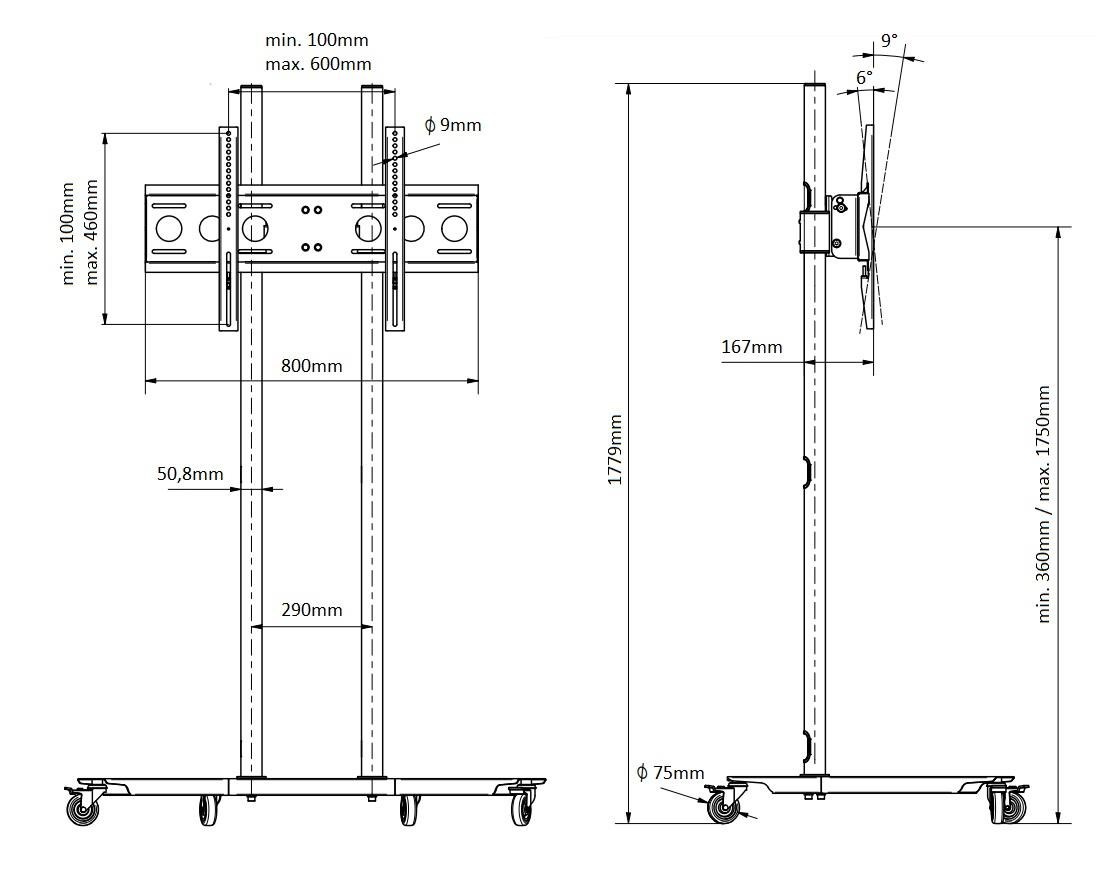 Televízny stojan EDBAK TR1-PWB Mobilný stojan na TV 43" až 75", nastavenie výšky 30-175cm, naklápanie +6°/-9°, VESA 100x100 až 600x400, vedenie káblov, nosnosť 80kg Táto profesionálna veľmi kvalitná televízna stojan je vhodná predovšetkým na prezentácie pomocou televízie alebo monitoru s uhlopriečkou 43" až 75". Nastavenie TV stojanu je premyslené do posledného detailu: nastaviteľná výška obrazovky, nastaviteľný náklon obrazovky, korekcia roviny obrazovky (výborné v prípade nerovnosti podlahy), systém skrytého vedenia káblov, pojazdové kolieska s aretáciou. Stojan je veľmi stabilný a bezpečný. V prípade potreby je možné dokúpiť police na príslušenstvo, hornú polici na kameru, podstavce miesto koliesok. Ideálny pre videokonferencie a prezentácie pomocou obrazovej techniky. Televízny stojan EDBAK TR1-PWB Technické údaje: maximálne zaťaženie 80kg na TV a monitory 43" až 75" VESA štandard 100x100 až 600x400 výška stojanu 180cm nastaviteľná výška TV podľa potreby po celej výške stojanu možnosť náklonu TV +6° / -9° rozmery podstavca 1127x694mm (ŠxH) systém skrytého vedenia káblov pojazdové kolieska s brzdou skvelá stabilita a bezpečnosť možnosť zakúpenia police na príslušenstvo, police na kameru, priehradky na katalógy, pevné podstavce profesionálny výrobok - najvyššia kvalita záruka 5 rokov Stojan na televízie a monitory ideálny na videokonferencie a prezentácie Edbak TR1-PWB Televízny stojan Edbak TR1-PWB podporuje VESA štandardy: VESA 100x100 VESA 200x100 VESA 200x200 VESA 300x200 VESA 300x300 VESA 400x200 VESA 400x300 VESA 400x400 VESA 600x400 maximálna rozteč VESA pre uchytenie TV 600x460 Na televízny stojan EDBAK TR1-PWB je možné zaviesť všetky typy, značky a veľkosti televízorov, ktoré majú hmotnosť do 80kg a ktoré podporujú ktorýkoľvek z vyššie uvedených VESA štandardov. Veľkosť uhlopriečky televízie alebo monitoru nie je podstatná a nehrá žiadnu rolu. Sklenená polička na príslušenstvo ku stojanu Edbak TRS2Horná polička na kameru alebo projektor 250x200mm Edbak CH5 Možnosť dokúpenia príslušenstva: polica na príslušenstvo (až 3ks na stojan) horná polička na kameru pevné podstavce - výmena za pojazdové kolieska