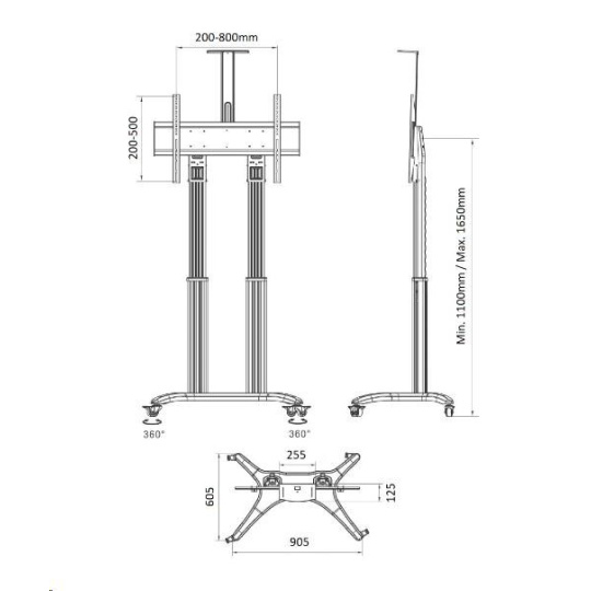 Televízny stojan na videokonferencie NB AVF1800B Profesionálny stojan na televízory a monitory 50-90", ideálny na videokonferencie alebo prezentácie, výškové nastavenie 110-165cm, policka na kameru, pojazdný, nosnosť 56,8kg Televízny stojan ideálny na videokonferencie alebo prezentácie - vhodný na zavesenie televízorov alebo monitorov s uhlopriečkou 50-90" a nastavenie do požadovanej výšky od 110cm do 165cm (výška po stred obrazovky). Na umiestnenie kamery je na stojane polohovateľná policka s rozmermi 255x125mm a nosnosťou 4,5kg. Stojan vyniká kvalitou, dizajnom a jednoduchým nastavením. Všetku kabeláž je možné viesť skryto telom stojanu. Vyrobený je z hliníka, kolieska sú osadené brzdou. Farebné prevedenie čierne, záruka 5 rokov. Televízny stojan na videokonferencie NB AVF1800B Technické údaje: nosnosť 56,8kg na televízie a monitory 50-90" podporuje VESA štandardy 200x100 až 800x400 plynulé nastavenie rozsahu výšky 1100 - 1650mm (výška od podlahy po stred obrazovky) horná policka na kameru 255x125mm, nosnosť 4,5kg systém na skryté vedenie kabeláže hliníková konštrukcia aj podstava profesionálne pojazdové kolieska, všetky sú osadené brzdou najvyššia kvalita, jednoduché nastavenie, maximálna bezpečnosť farebné prevedenie čierne záruka 5 rokov Stojan na videokonferencie, prednášky a propagácie s nastavením výšky TV 110-165cm NB AVF1800BStojan na televízie a monitory NB AVF1800B je dodávaný vrátane hornej policiek na kameru s nosnosťou 4,5kg Tv stojany AVF1800B podporujú VESA štandardy: VESA 200x100 VESA 200x200 VESA 300x200 a 200x300 VESA 300x300 VESA 400x200 a 200x400 VESA 400x300 a 300x400 VESA 400x400 VESA 600x200 VESA 600x300 VESA 600x400 VESA 800x400 VESA 800x500 Stojany na TV NB AVF1800B sú ideálne na využitie na videokonferenciách, prednáškach alebo propagáciách. Svoje využitie našli predovšetkým vo firmách, školách, na výstavách ale aj pre súkromné účely v domácnostiach.