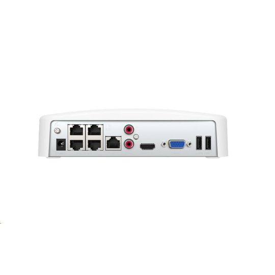 - Porty: 4x LAN PoE RJ45 port 10/100 Mb/s pre pripojenie kamier, 1x LAN RJ45 port 10/100 Mb/s pre pripojenie na internet, 2x RCA zvuk, 1x HDMI, 1x VGA, 2x USB 2.0, 1x Napájací Jack