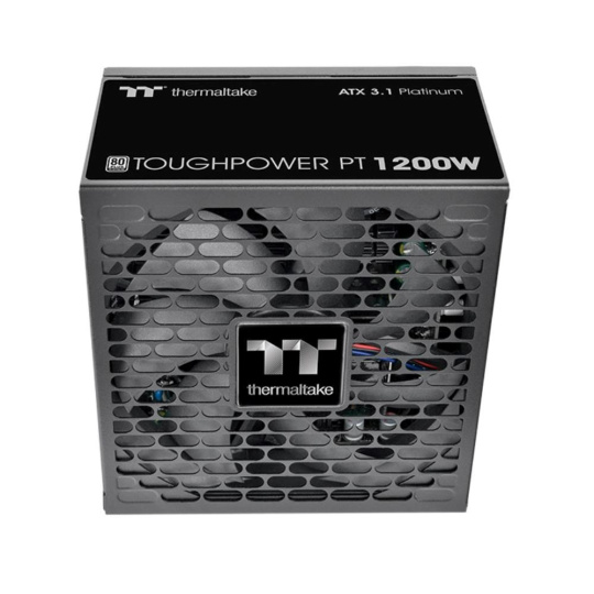 Toughpower PT 1200W Platinum je kompatibilný s ATX 3.1, má certifikáciu 80 PLUS Platinum a podporuje nativné PCIe Gen 5.1 (12+4pin) pre napájanie novej generácie grafických kariet. Poskytuje 1200 W nepřetržitého výkonu pri 40 °C.