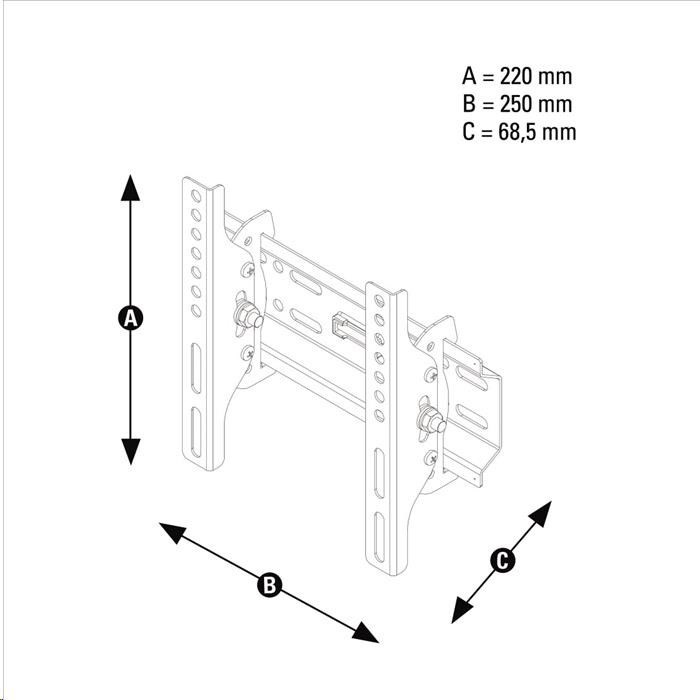 - naklápací držiak pre LCD obrazovky s uhlopriečkou cca 10" až 46" (25 až 117 cm) - VESA max. 200x200, nastaviteľné ramená pre akúkoľvek menšiu rozteč závitov - jednoduché zavešenie TV pomocou dvoch ramien - nastaviteľný sklon +15/-15 stupňov - max. veľkosť upevňovacích závitov na TV: M8 - rozmery nástenného modulu: 25 x 10 cm - hĺbka: 6,9 cm - nosnosť: max. 30 kg - kategória: 1* (základná rada) - farba: čierna - vrátane vodováhy a montážneho príslušenstva