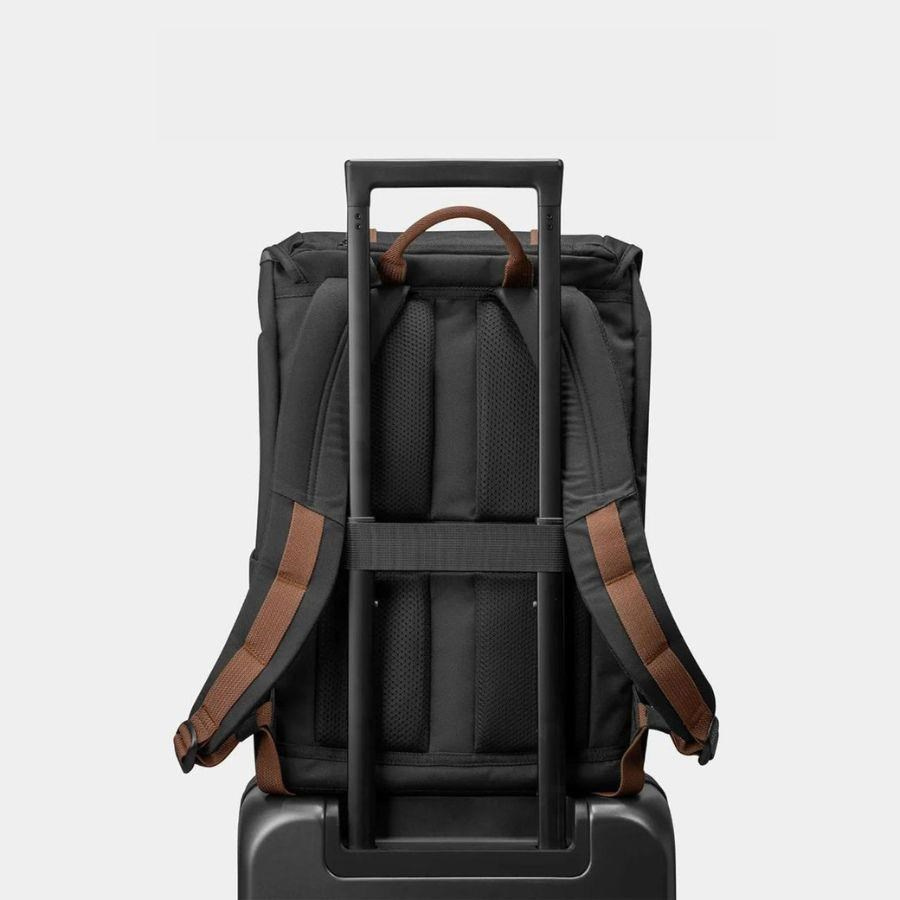 Poboc polstrovaného, priedušného chrbta pre dlhé nosenie poskytujú pohodlie aj polstrované ramenné popruhy. Ich dĺžku jednoducho nastavíte pomocou prackami YKK. Perfektne navrhnutá konštrukcia batohu, mäkká výstelka častí, ktoré sa bezprostredne dotýkajú vášho tela, a zabezpečená cirkulácia vzduchu prispievajú k pocitu ľahkosti aj pri nosení veľkého nákladu. K vášmu komfortu prispievajú aj ďalšie, do detailu doladené maličkosti. Príkladom je pás pre preťahovanie rukoväte zavazadla umiestnený na zadnej strane batohu. Dále držadlo na hornej strane a madlo na vnútornej strane pod klopou, aby ste mohli batoh ľahko preniesť kedykoľvek. Sťahovacia šnúrka na uzavretie hlavnej kapsy zaujme svojim retro dizajnom. Dôverovať môžete prémiovým zipsom YKK aj vodeodolnej vrchnej tkanine. Všetky tieto vysoko kvalitné komponenty dokonale vyvažujú požiadavky na odolnosť a štýl.Zhrnutie vlastností