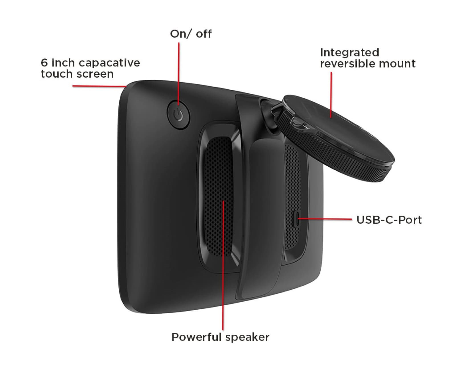 Sledujte svoju trasu na 6" dotykovej obrazovke s vysokým rozlíšením pre bezpečnejšiu jazdu a vďaka výkonnému reproduktoru ľahko počujete každý signál. Výkonný reproduktor zabezpečí zreteľné hovorené pokyny.
