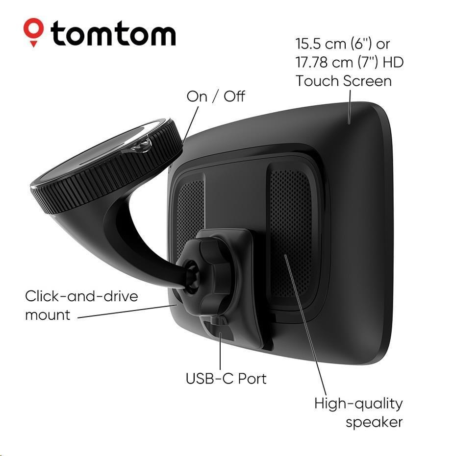 Prezrite si svoju trasu vo veľmi vysokých detailoch na 6" / 7" dotykovom displeji, ktorý sa môže pochváliť najlepším rozlíšením na trhu. A vďaka ovládaniu pomocou hlasových príkazov môžete zariadenie TomTom GO Expert Plus ovládať, aniž by ste museli sundávať ruky z volantu. Jednoducho použiteľný držiak Click-and-Drive navyše drží GPS navigáciu bezpečne na mieste.