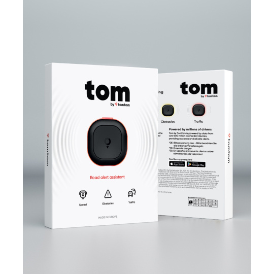 Môžete si bezpečne nechať telefón skrytý, pokiaľ je v dosahu Toma. Tom totiž na prijímanie upozornení vyžaduje spojenie Bluetooth s aplikáciou TomTom vo smartfóne. Aplikácia TomTom nevyžaduje predplatné a je dostupná v obchodoch Apple App Store aj Google Play.