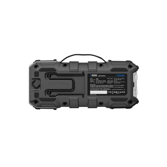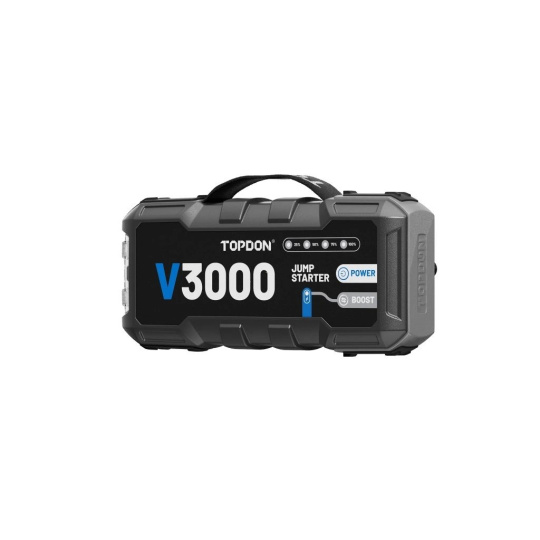 Štartovací zdroj TOPDON V3000 je výkonný štartovací booster a powerbanka v jednom navrhnutý pre náročné podmienky a vozidlá s 12 V systémom (osobné autá, SUV, pick-upy, menšie nákladné vozidlá). Disponuje špičovým prúdom až 3000 A, vďaka čomu spoľahlivo naštartuje benzínové motory až 9,0 l a naftové až 7,0 l.