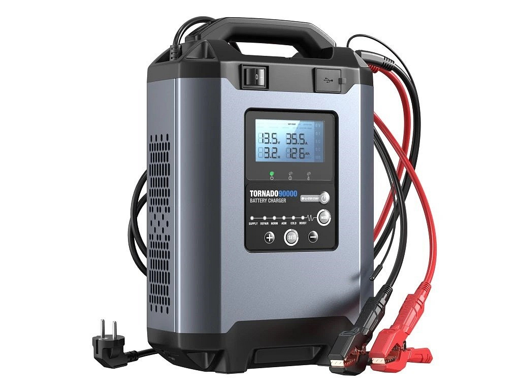 Tornado 90000 využívá inteligentní 9-krokový proces nabíjení, který optimalizuje celý proces od analýzy stavu baterie až po její plné nabití a udržovací režim. Díky tomu je nabíjení bezpečné, efektivní a zároveň šetrné k baterii, což pomáhá prodlužovat její životnost.
