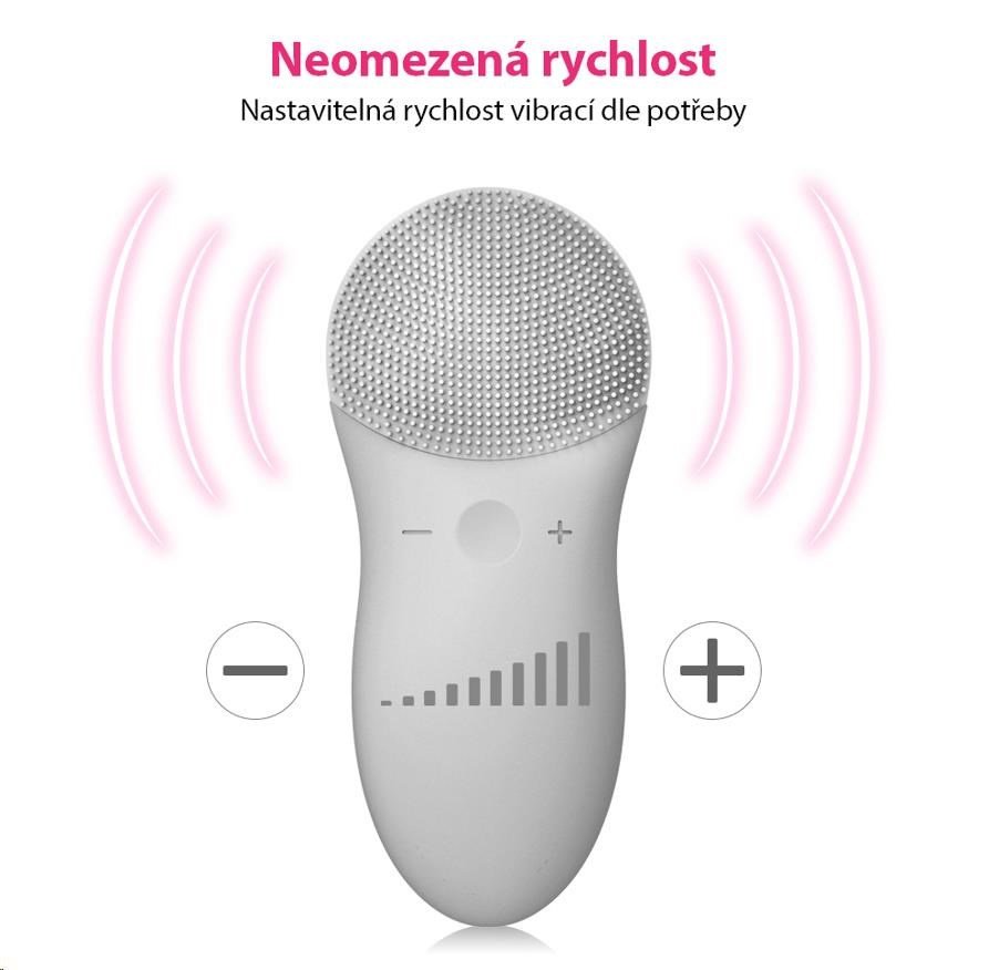 - Rýchlosť vibrácií je nastaviteľná pre prispôsobenie rôznym potrebám pokožky.