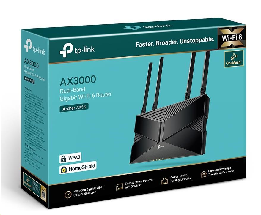 TP-Link Archer AX53 OneMesh/EasyMesh WiFi6 router (AX3000, 2,4GHz/5GHz, 1xGbEWAN, 4xGbELAN)