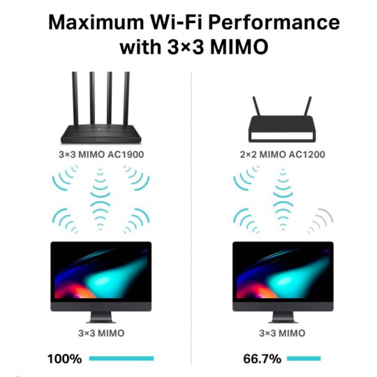 - 3×3 MIMO technológia – Prenos a príjem dát vo troch prúdoch pre bezproblémové spárovanie s vašimi 3 × 3 klientmi.