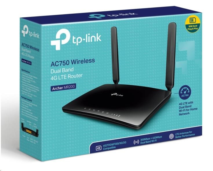 TP-Link Archer MR200 OneMesh WiFi5 router (AC750, 4G LTE, 2,4GHz/5GHz, 3x100Mb/s LAN, 1x100Mb/s LAN/WAN, 1xnanoSIM)