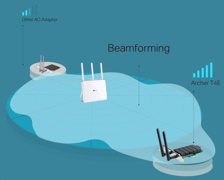 Archer T4E od TP-LINK podporuje pokročilý štandard Wi-Fi IEEE 802.11ac, ktorý ponúka 3-krát vyššiu rýchlosť prenosu než štandard IEEE 802.11n. V pásme 2,4 GHz môžete posielať e-maily a prehliadať web, zatiaľ čo vo voľnom rýchlom pásme 5 GHz ho môžete využiť na hranie hier, HD streaming a ďalšie aplikácie vyžadujúce veľkú šírku pásma.