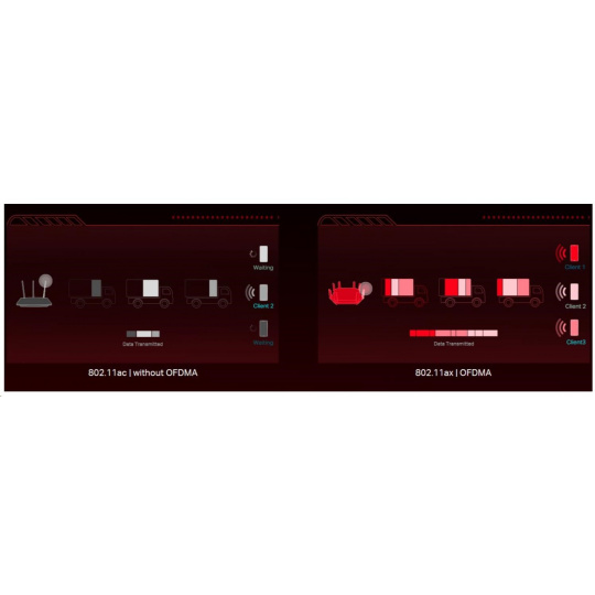 - Bezkonkurenčná rýchlosť Wi-Fi 6 - prekračuje gigabitovú hranicu rýchlosťou až 2402 Mb/s (5 GHz) + 574 Mb/s (2,4 GHz)