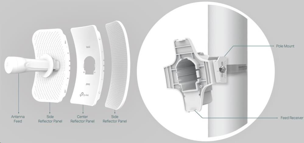 - Inovatívne diely so zámkom zabezpečujú rýchlu montáž a odolné konštrukčné riešenie, ktoré udrží CPE605 stabilný aj za silného vetra