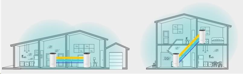 | WiFi Dosah | Rodinné domy 3-4 izby (3-pack) TP-Link Mesh technológia Voliteľná Ethernet backhaul spoločne spolupracujú na prepojení jednotiek Deco pre bezproblémové pokrytie 2× Antény (Vnútorné) Víceanténový systém na zosilnenie signálov v rôznych smeroch a na veľkých plochách Beamforming Zameriava bezdrôtový signál smerom k klientom pre rozšírenie WiFi dosahu |
