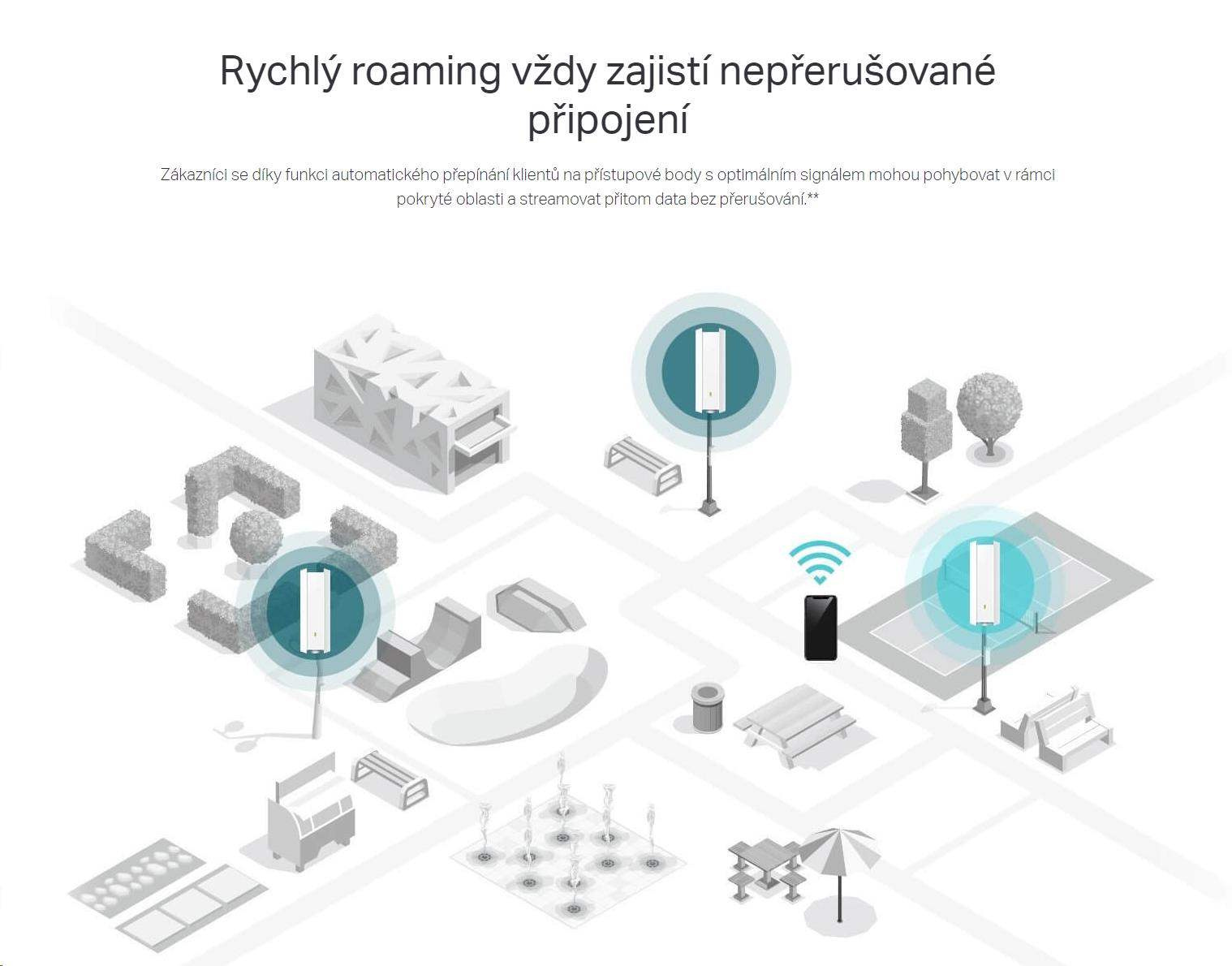 - Rýchly roaming vždy zabezpečí neprerušené pripojenie: Používatelia sa môžu spoľahnúť na jednoduché prepínanie svojich zariadení medzi prístupovými bodmi pri pohybe po dome alebo napríklad medzi kanceláriami.