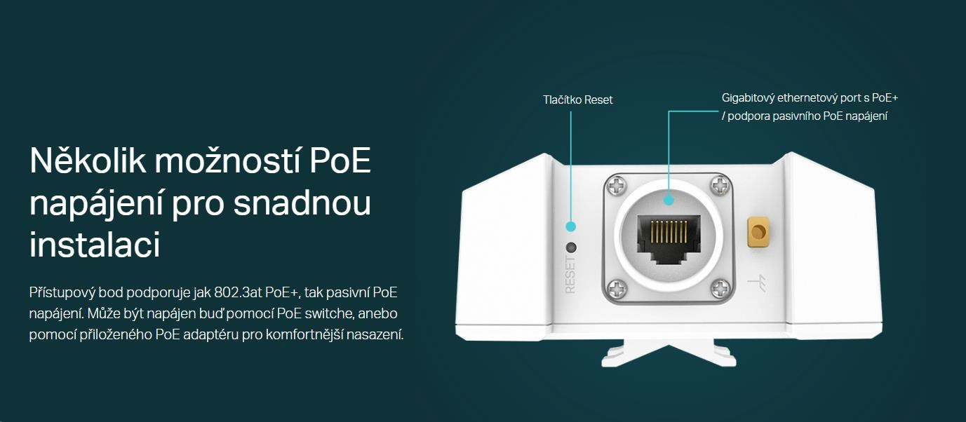 | Interface | 1× Gigabit Ethernet (RJ-45) port (podpora 802.3at PoE a Passive PoE) |