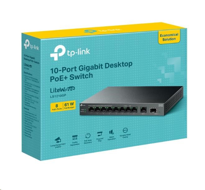 TP-Link LiteWave switch LS1210GP (9xGbE, 1xSFP, 8xPoE+, 61W, fanless)