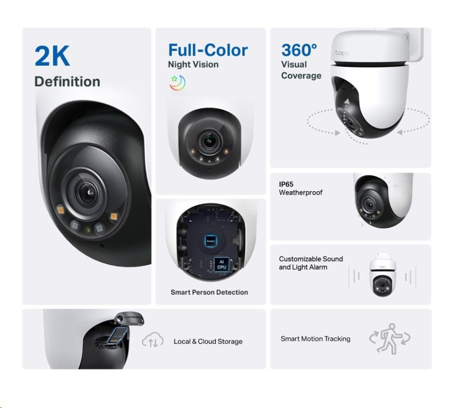 - Chytré sledovanie pohybu: Kamera Tapo C510W sleduje pohyb v okolí s použitím vysokorýchlostného otáčania, aby vám sprostredkovala všetko, čo sa pohybuje v danej oblasti.