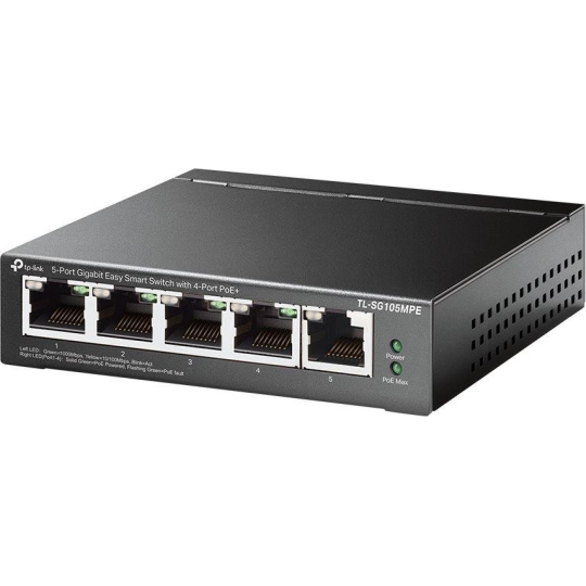 TP-Link Easy Smart switch TL-SG105MPE (5xGbE, 4xPoE+, 120W, fanless)