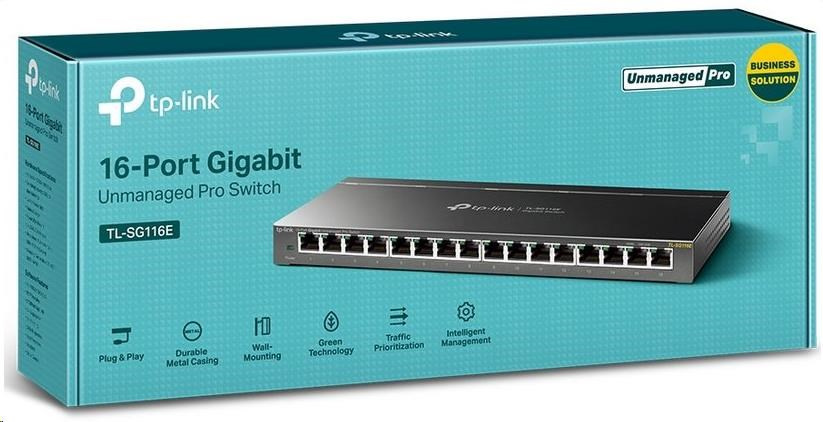 | Balenie obsahuje | TL-SG116E Napájací kábel Inštrukcie na inštaláciu Gumené nohy |