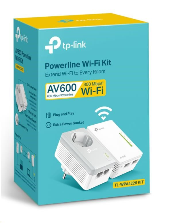 TP-Link TL-WPA4226KIT WiFi4 průchozí powerline set (N600, AV600,2x100Mb/s,HomePlug AV2)