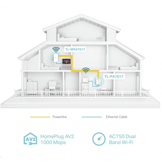 Sada adaptérů TL-WPA7517 KIT premení vašu existujúcu domácu elektroinštaláciu na gigabitovú sieť a umožní preniesť káblovú a bezdrôtovú sieť všade tam, kde je elektrická zásuvka.