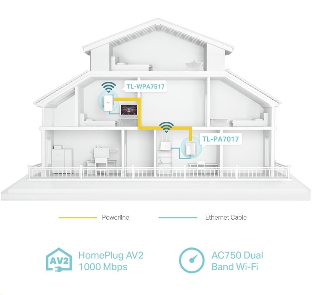 Sada adaptérů TL-WPA7517 KIT premení vašu existujúcu domácu elektroinštaláciu na gigabitovú sieť a umožní preniesť káblovú a bezdrôtovú sieť všade tam, kde je elektrická zásuvka.