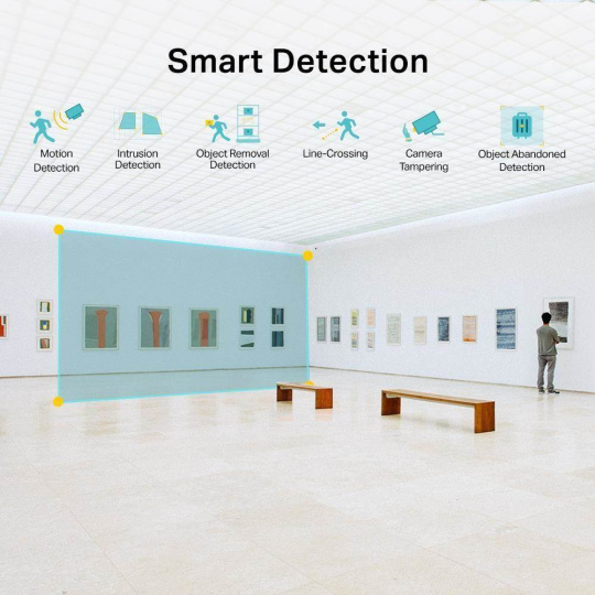 - Inteligentná detekcia: Prijímajte oznámenia a kontrolujte kanály, keď niekto prekročí hranicu, vstúpi do nastaveného priestoru, prekáža kamere alebo odstráni/opustí objekty.