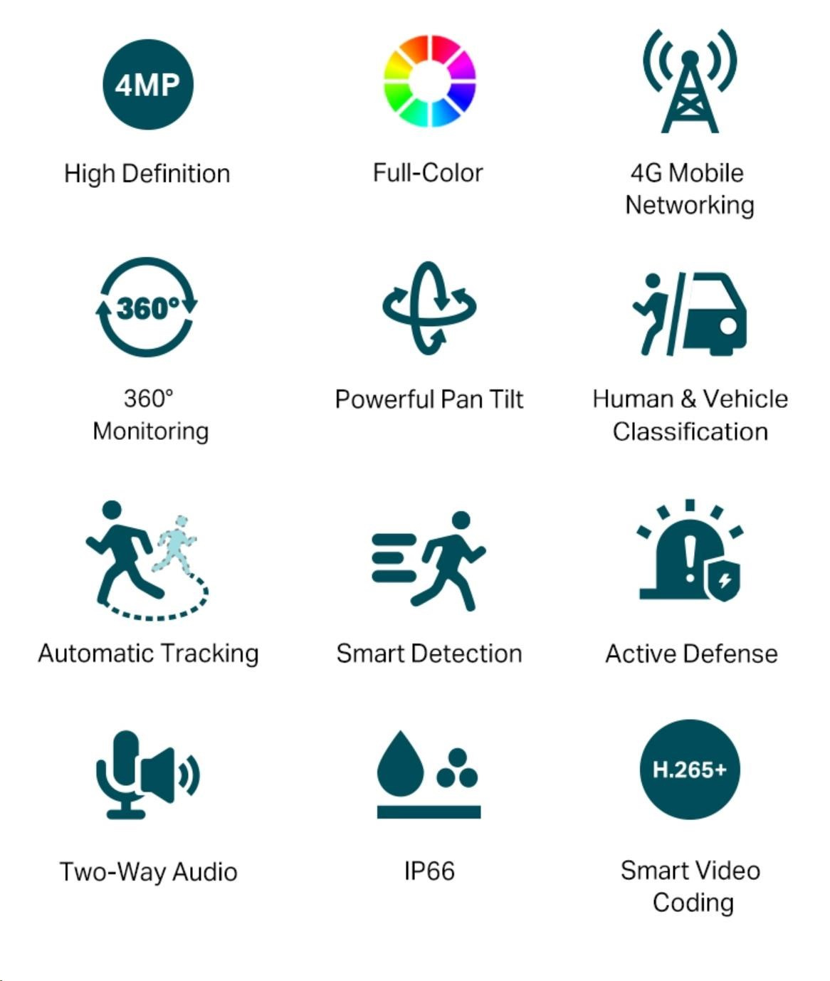 VIGI 4MPx Vonkajšia Full-Color Sieťová kamera 4G s možnosťou otáčania a naklápania