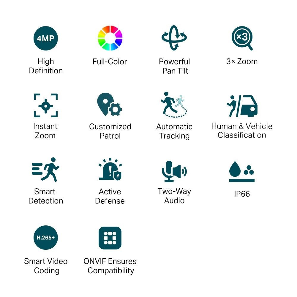 - Aktívna obrana: Okamžite upozornite potenciálnych votrelcov zvukom a svetlom v prípade abnormálnych udalostí.
