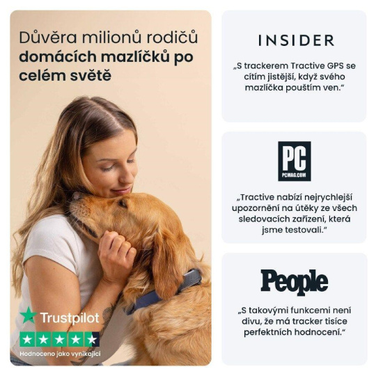 Zabezpečte svojmu psovi bezpečie a zdravie s Tractive DOG 6: výkonným univerzálnym GPS obojkom pre psov, ktorý vám v reálnom čase ukáže, kde presne pes je, sleduje jeho spánok a aktivitu a ponúka radu ďalších funkcií. GPS lokátor pre psov má v Českej republike a v ďalších viac ako 175 krajinách neobmedzený dosah vďaka integrovanému SIM karte, ktorá sa pripojí k akejkoľvek partnerskej sieti (je potrebná možnosť pripojenia k mobilnej sieti). Vyberte si predplatné, ktoré pokrýva náklady. Môžete si zvoliť predplatné na mesiac, 1, 2 alebo 5 rokov už od 90 Kč / mesiac*.