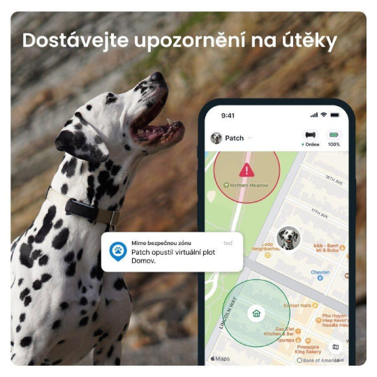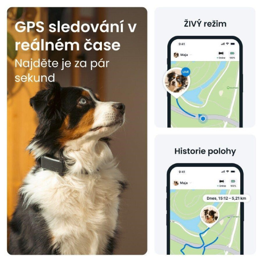 • GPS tracker pre psov funguje s aplikáciou, ktorá je dostupná pre systémy iOS aj Android