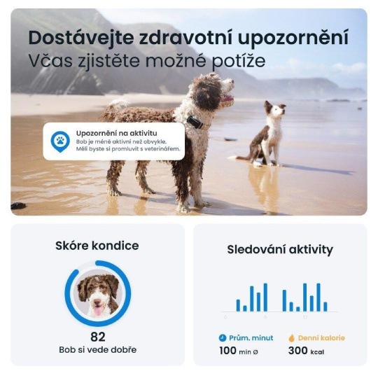 GPS tracker Tractive vás informuje, koľko sa váš pes pohybuje, spí a štekať. Môžete nastaviť ciele pohybu, kontrolovať Skóre kondície a porovnávať svojho psa s inými plemenami.