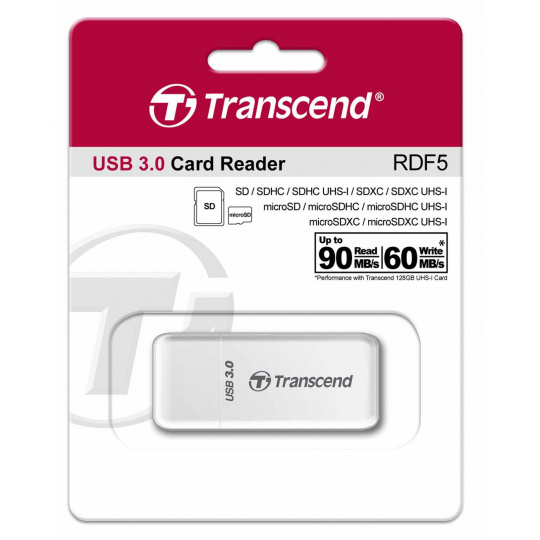 Čítačka kariet TRANSCEND F5, USB 3.0, biela
