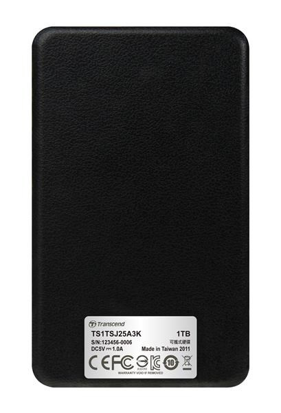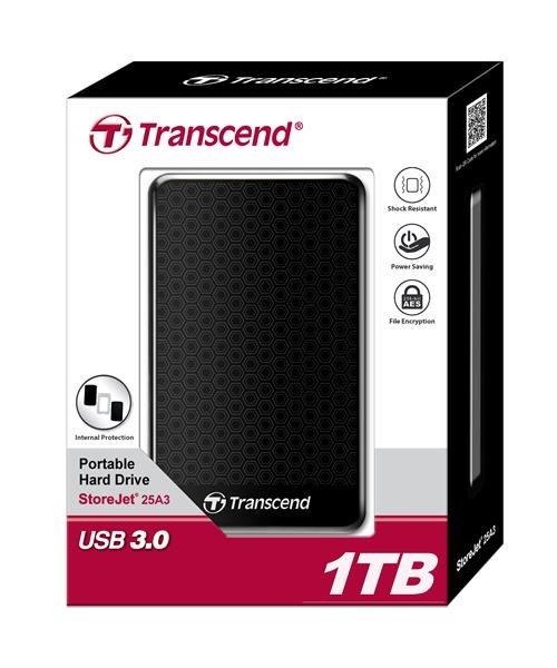 Externý pevný disk TRANSCEND 2,5" USB 3.1 StoreJet 25A3, 1 TB, čierny (nárazuvzdorný, 256-bitový AES)